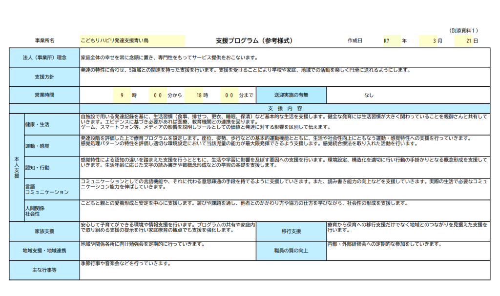 身辺自立へ向けての支援、読み書き、数の概念形成、手先の不器用さ改善、運動の不器用さ改善、姿勢保持へ向けた支援、コミュニケーション全般、小集団での活動