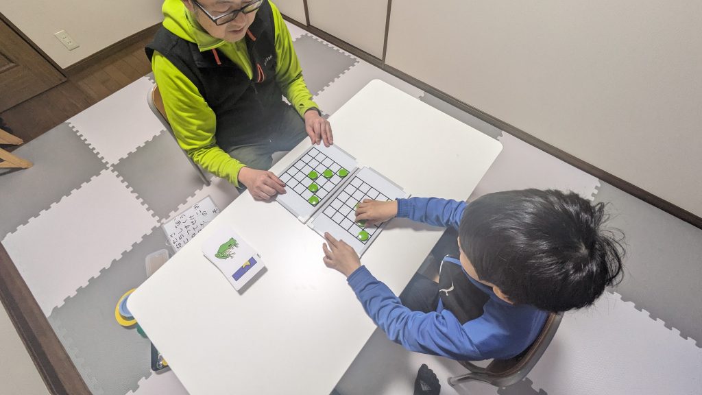 読み書きがなかなか上手にできない場合はその原因を見つける必要があります。形を捉える力がまだ不十分な場合は、繰り返し書字練習をすることで、字を書くことがイヤになってしまうかもしれません。楽しみながら、マスの中で磁石を動かすことや、図形の構成を追っていくことで「字」という図形の成り立ちを覚える準備が出来ていきます。